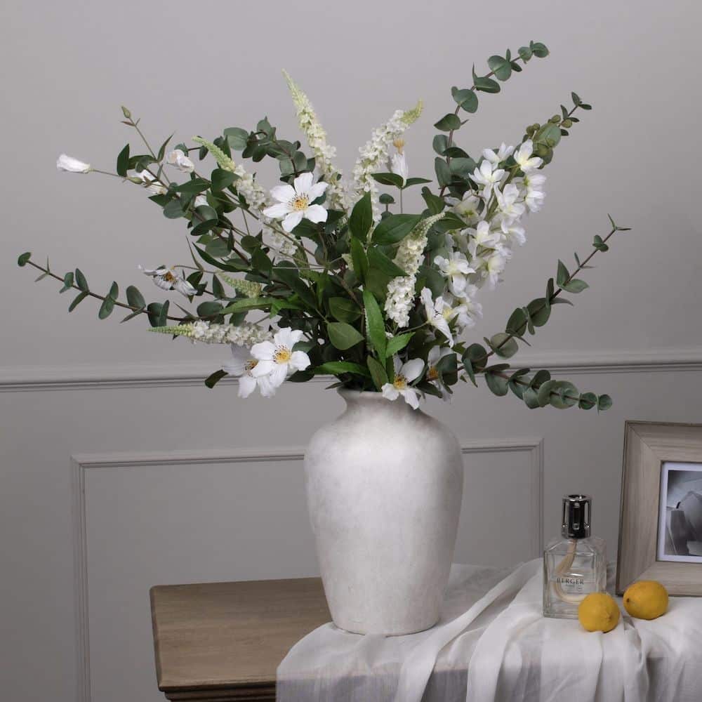 Use this life-like eucalyptus stem as a filler in bouquet of faux flowers or bundle more of this stem together for an impactful arrangement.